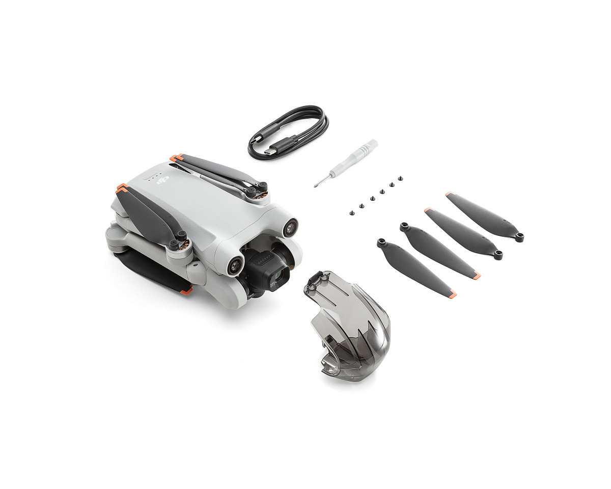 Квадрокоптер DJI Mini 3 Pro – 1 шт. Пульт дистанционного управления DJI RC-N1 – 1 шт. Кабель для пульта DJI RC-N1 (с разъемом USB Type-C) – 1 шт.